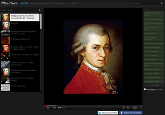 MusictonicではRelatedの情報をインターネットラジオLast.FMから取得しており、YouTubeよりも簡単に数多くの類似アーティストを探せます。autojumpにチェックを入れておけば一曲ごとに別アーティストの動画に変わるので、新しいアーティストとの予期せぬ出会いも楽しめるでしょう。なおYouTubeと同様、Twitter/Facebookでの共有やフルスクリーン表示も可能です。